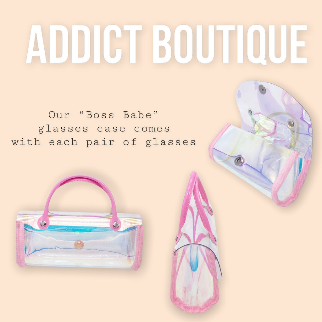 Pink, stylish, see-through, small sunglasses case.